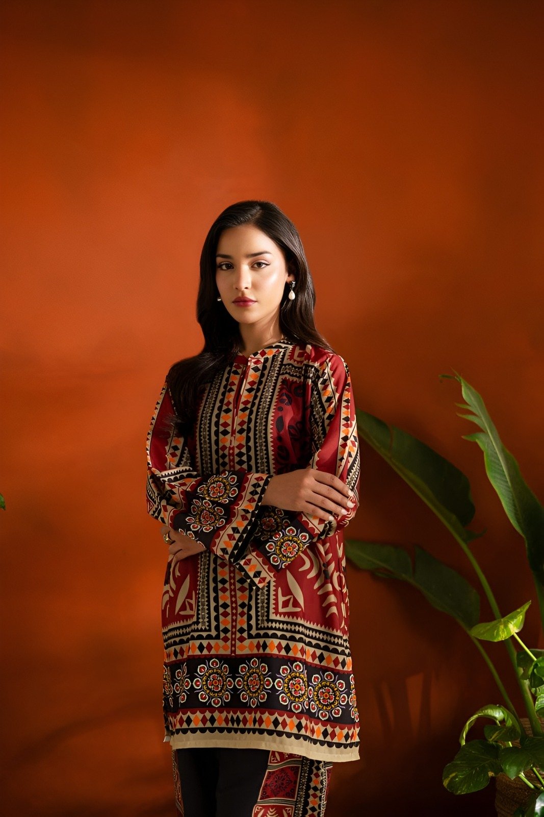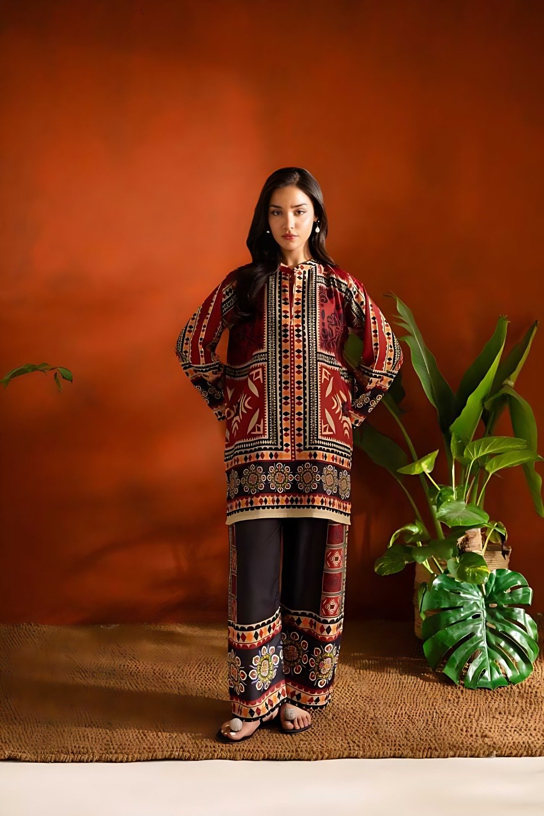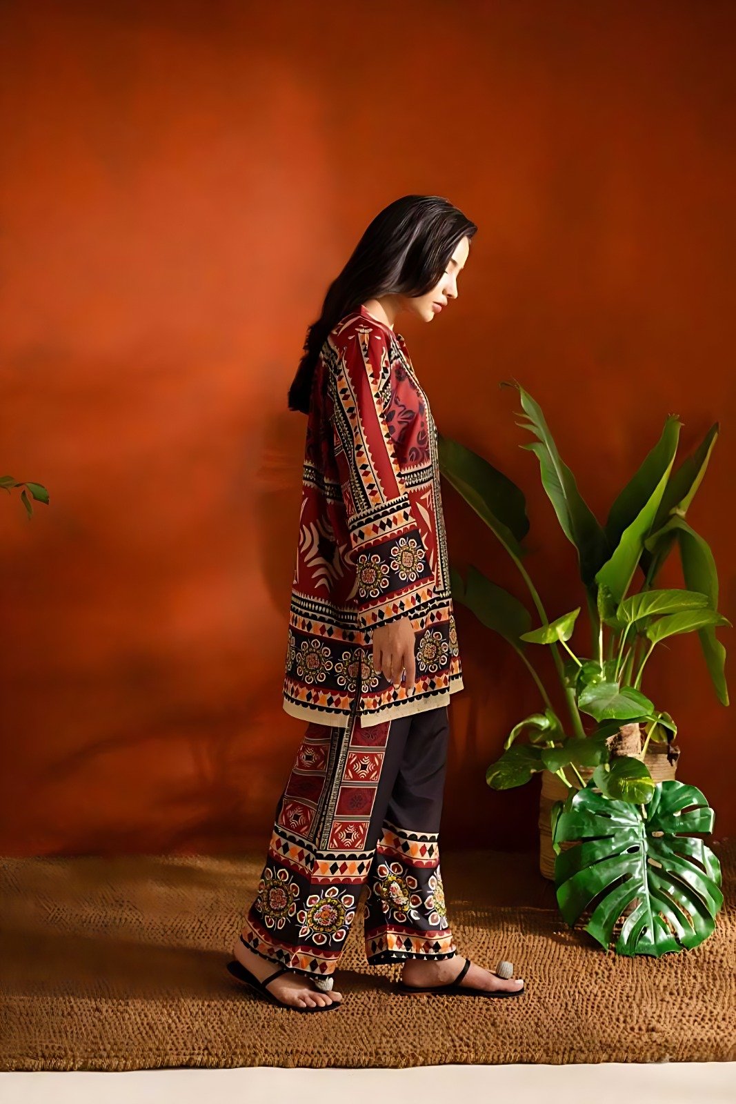 Scarlet Veil – Printed Long 2-Piece Suit